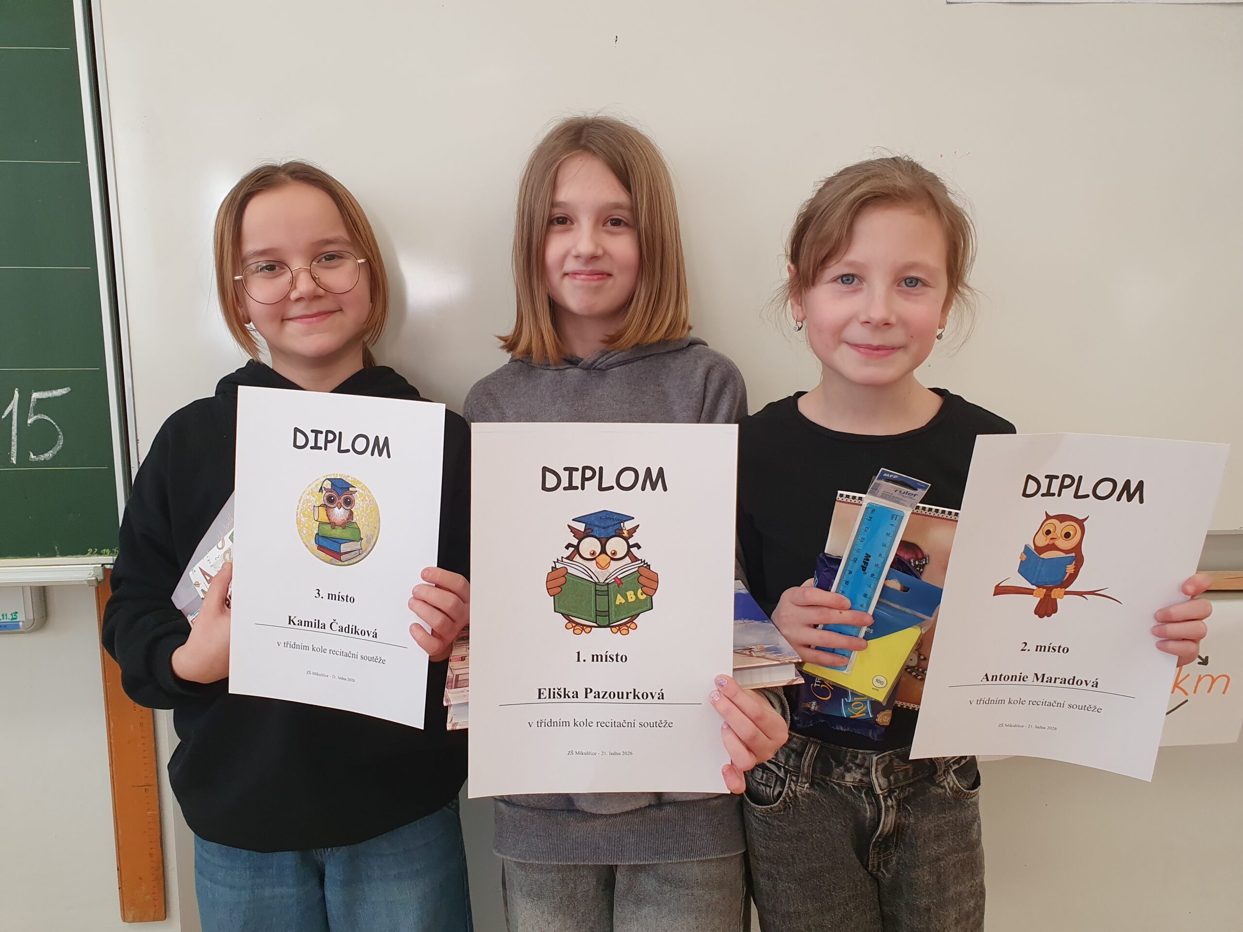 V pátek 14. listopadu se rozdávaly madaile za podzimní výkony v Mikulecké sportovní lize. Žáci plnili různé disciplíny v rámci tělocviku a získávali tak body do soutěže. Tentokrát jsme byli úspěšní hned třikrát:
